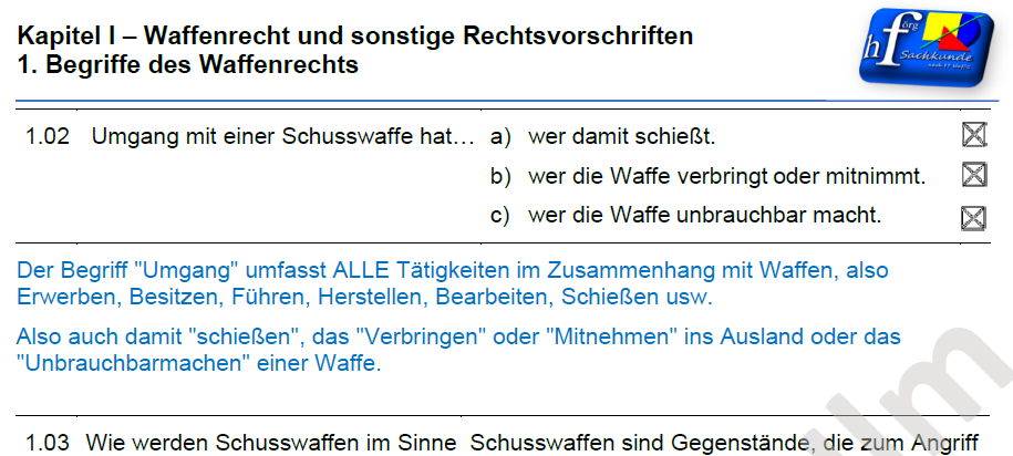 Willkommen beim “Lernen für die Waffen-Sachkunde”.
