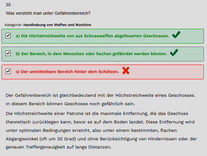 Beides zusammen, Lernunterlagen und Quiz, bietet die Möglichkeit, alle Fragen mit den Antworten anzusehen. Eine Auswertung, die Erklärung und die richtigen Antworten bekommt Ihr gleich nach der Frage dargestellt. Insgesamt zusammen eignen sich die Module, um sich auf die Prüfung ausreichend vorbereiten zu können.